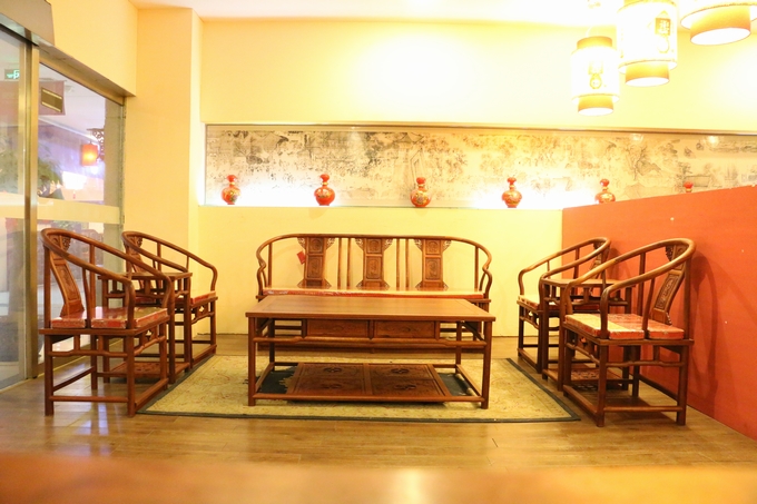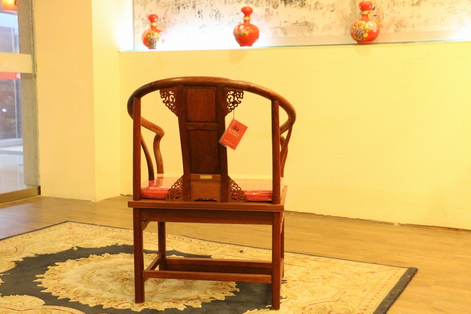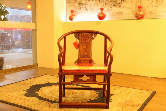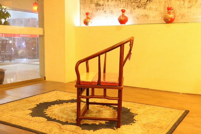 先來(lái)看看單人位沙發(fā)——圈椅,此圈椅沿襲了明代遺風(fēng),總體柔婉流暢的線條,顯露出設(shè)計(jì)者巧思之美;而少見(jiàn)的不出頭扶手直接與鵝脖相卯合,給人以纖秀雅巧的感覺(jué);加上優(yōu)質(zhì)的緬甸花梨木作為用材,使較易損壞的椅圈也更顯牢固堅(jiān)硬,兼具了形態(tài)之美與優(yōu)秀的做工的同時(shí),還擁有著良好的用材,優(yōu)美優(yōu)質(zhì)。雕飾圖案上的內(nèi)容包括有:在靠背板處的上方——一輪外圓框鑲嵌而內(nèi)的艷麗的牡丹花紋飾作為點(diǎn)綴,昭顯著”富貴”與”祥和”之瑞氣;中間位置還有——一株插在瓶器中的花草清野以及一矮小型的長(zhǎng)青株卉,透露出一股淡淡的青草氣息,花香悠長(zhǎng),自然生氣;另外在其靠背板上下的左右兩側(cè)以及券口牙子部分還雕飾有些許簡(jiǎn)單的鏤空紋飾作為處理,給整體營(yíng)造出一種典雅的中國(guó)風(fēng)氣息感受,細(xì)膩而又含蓄。