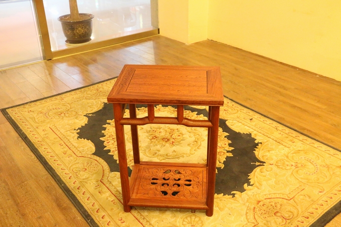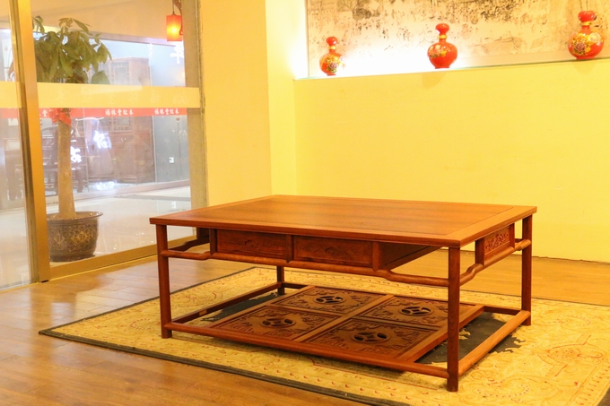 另外該套沙發(fā)同樣是為了滿足其人們實(shí)用性的需求,在大平幾的上方特別精心設(shè)計(jì)了左右兩格抽屜,方便了人們平時(shí)使用時(shí)用來(lái)存放物品。素面淡雅的桌面,光整圓潤(rùn),簡(jiǎn)約筆直的座腳設(shè)計(jì),暗合了整套沙發(fā)圈椅中注重線條感之特點(diǎn),另外平幾下方的踏板之上還設(shè)有一繪有四格的“四蝠朝古錢”的紋飾圖案,象征著滾滾財(cái)源以及美好與幸福的祝福寓意。而高幾處之設(shè)計(jì)風(fēng)格同樣與沙發(fā)大平幾保持了一致,使之搭配更為一體,而唯一一處雕飾同樣是位于高幾的下方板面處,那形似蔓草(亦稱唐草,隋唐時(shí)期特別流行)的紋飾,加之些許鏤空雕刻作為處理,在更顯古典古風(fēng)之余還寄寓了人們、長(zhǎng)久的吉祥寓意,莊華而浮美。